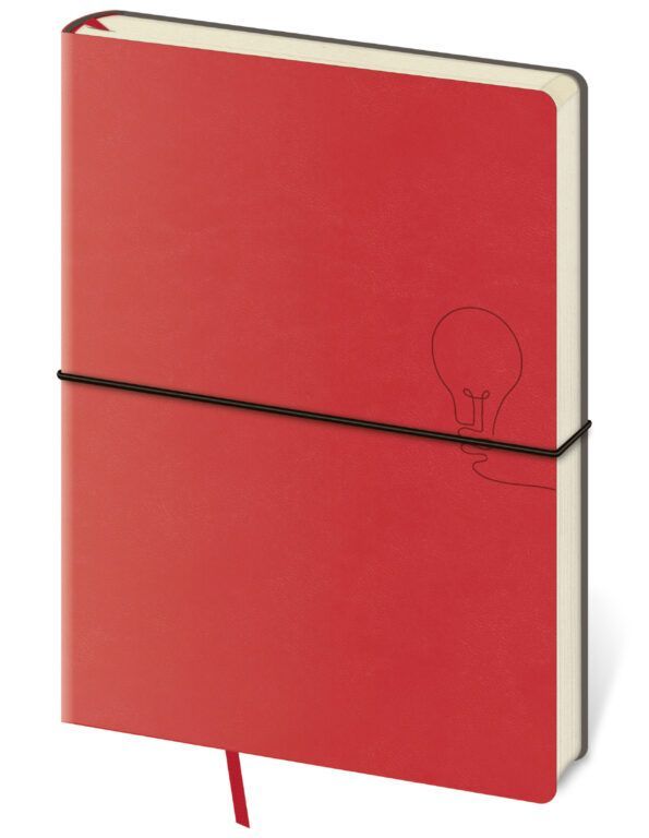 Moderný zápisník v mäkkej ohybnej väzbe s guľatou priečnou gumičkou cez chrbát predstavuje najnovší spôsob spracovania. Diár je príjemný do ruky vďaka matnej koženke a ľahký vďaka mäkkým doskám. Materiál dosiek sa hodí na sleporazbu, ktorá na koženke vynikne.